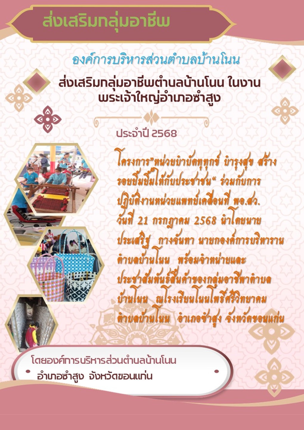 โครงการส่งเสริมอาชีพตำบลบ้านโนนด้านหัตถกรรมการสานตะกร้าพลาสติก ประจำปีงบประมาณ 2569