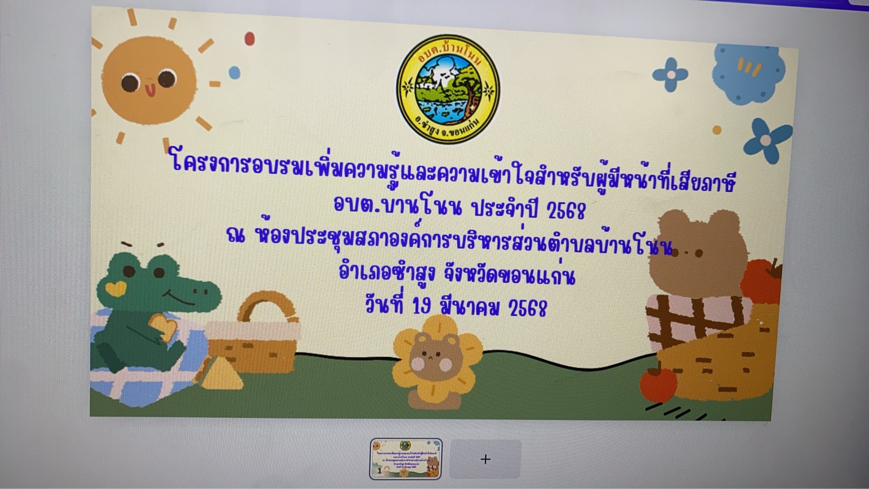 ประชาสัมพันธ์ เข้าร่วมโครงการฝึกอบรมผู้มีหน้าที่เสียภาษี อบต.บ้านโนน ประจำปี พ.ศ.2568