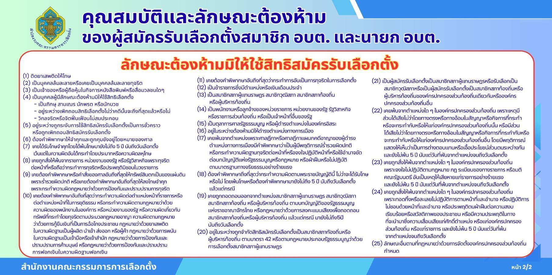 คุณสมบัติและลักษณะต้องห้ามของผู้สมัครรับเลือกตั้งสมาชิก อบต.และนายก อบต.
